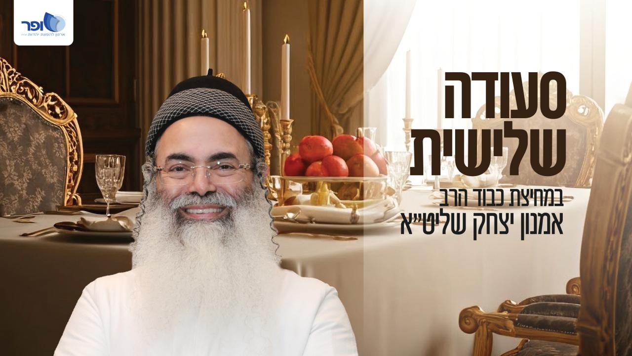 סעודה שלישית - בזכות סעודה שלישית ניצלים מחבלו של משיח, מדינה של גיהנם, וממלחמת גוג ומגוג (שבת קיח, א) "רַעֲוָא דְּרַעֲוִין" ("רצון הרצונות") עם הרב אמנון יצחק שליט"א בבית הכנסת קהילות פז רח' מתתיהו 10 בני ברק סעודה שלישית כיד המלך ודברי תורה מתוקים מדבש ניתן להקדיש את הסעודה לע"נ או להבדיל לרפואה שלימה, הצלחה, זיווג הגון, זרע קודש בר קיימא, ועוד... כל הקודם זוכה! המחיר לזמן מוגבל 1,000 ש"ח (לכתבה - לחץ כאן). לתרומה ישירה דרך אתר שופר לחץ כאן.