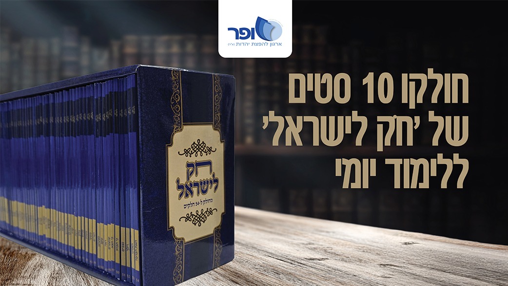 בשורה משמחת: חולקו 10 סטים של 'חֹק לישראל' ללימוד יומי | נדיבי עם יקרים תרמו כ־10 סטים מהודרים של 'חֹק לישראל' ללימוד יומי, שנמסרו למשפחות המבקשות להתחזק בלימוד קבוע המביא ברכה לבית. הביקוש גובר, וכבר מתקבלות פניות ממשפחות נוספות המבקשות לזכות בלימוד יקר זה. פורסם בתאריך: 18.09.2025, 13:56 • מערכת שופר, לכתבה - לחץ כאן, לתרומה ישירה דרך אתר שופר - לחץ כאן.