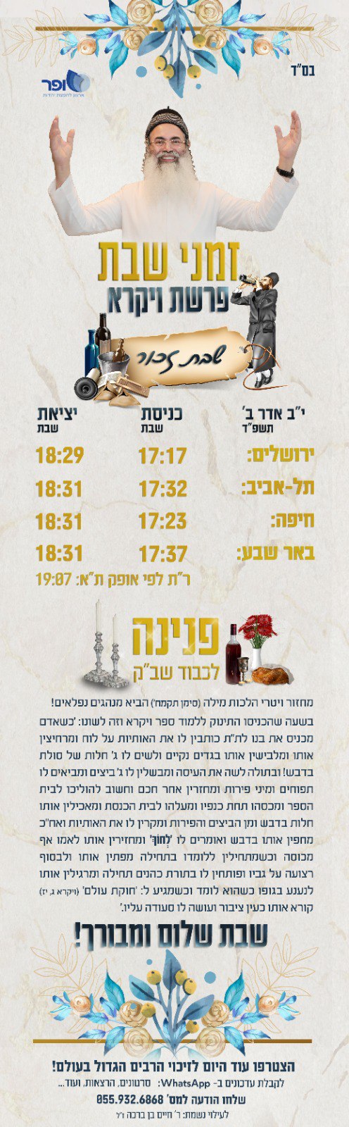 ב"ה כל זמני כניסת שבת וחג הבעל"ט מוקדשים באופן קבוע לעילוי נשמתו מצ"ב דוגמאות