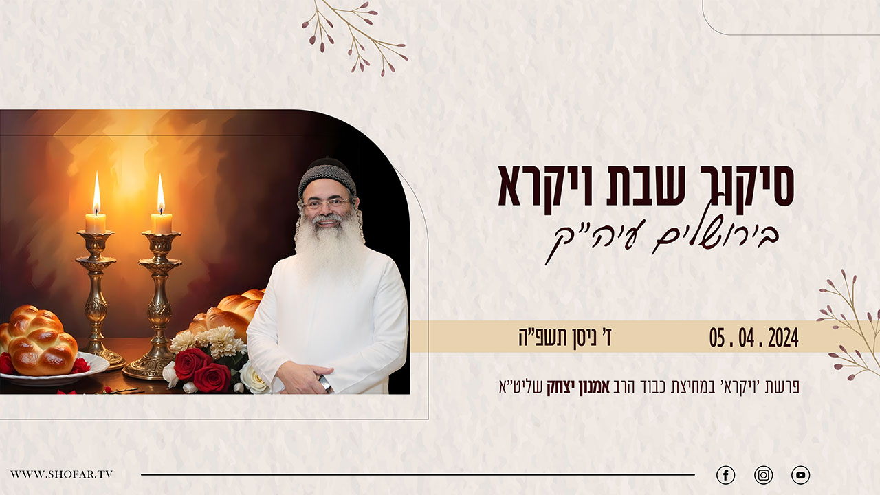 ב"ה אנו זוכים להתארגן מוקדם לקראת בואה של שבת המלכה, ומתכוננים בשיעור מיוחד המשודר בשידור חי מירושלים לכל העולם מפי כבוד הרב שליט"א: הרגיל בנר - חלק ב' 04.04.2025 ע"פ הספר הנפלא 'פורים דיליה'.
