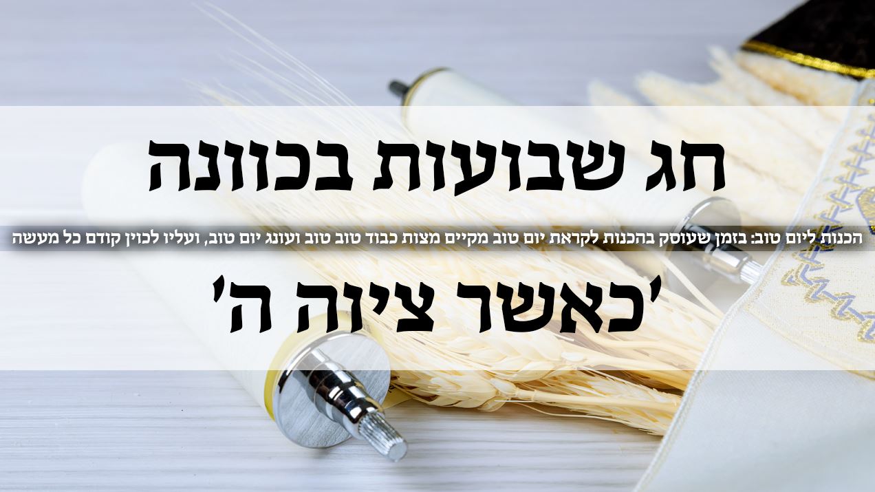 ומכבוד הרב שליט"א לסדרת שיעורים על חג השבועות - לחץ כאן שיעור דוגמא: 'ענייני חג השבועות - חלק ב'.