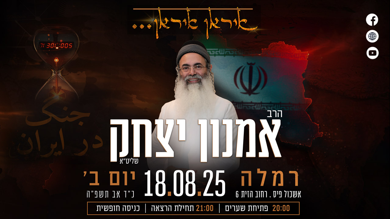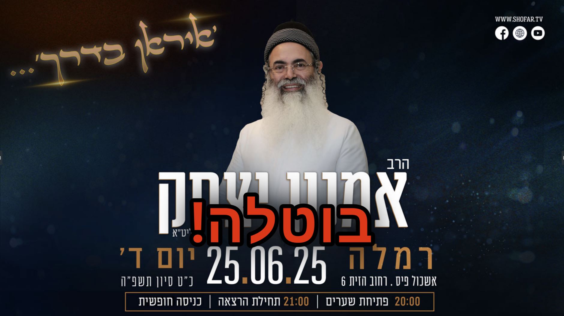 פורסם בתאריך: 23.06.2025, 16:01 • מערכת שופרההרצאה ברמלה נדחתה עקב הנחיות ביטחוניות