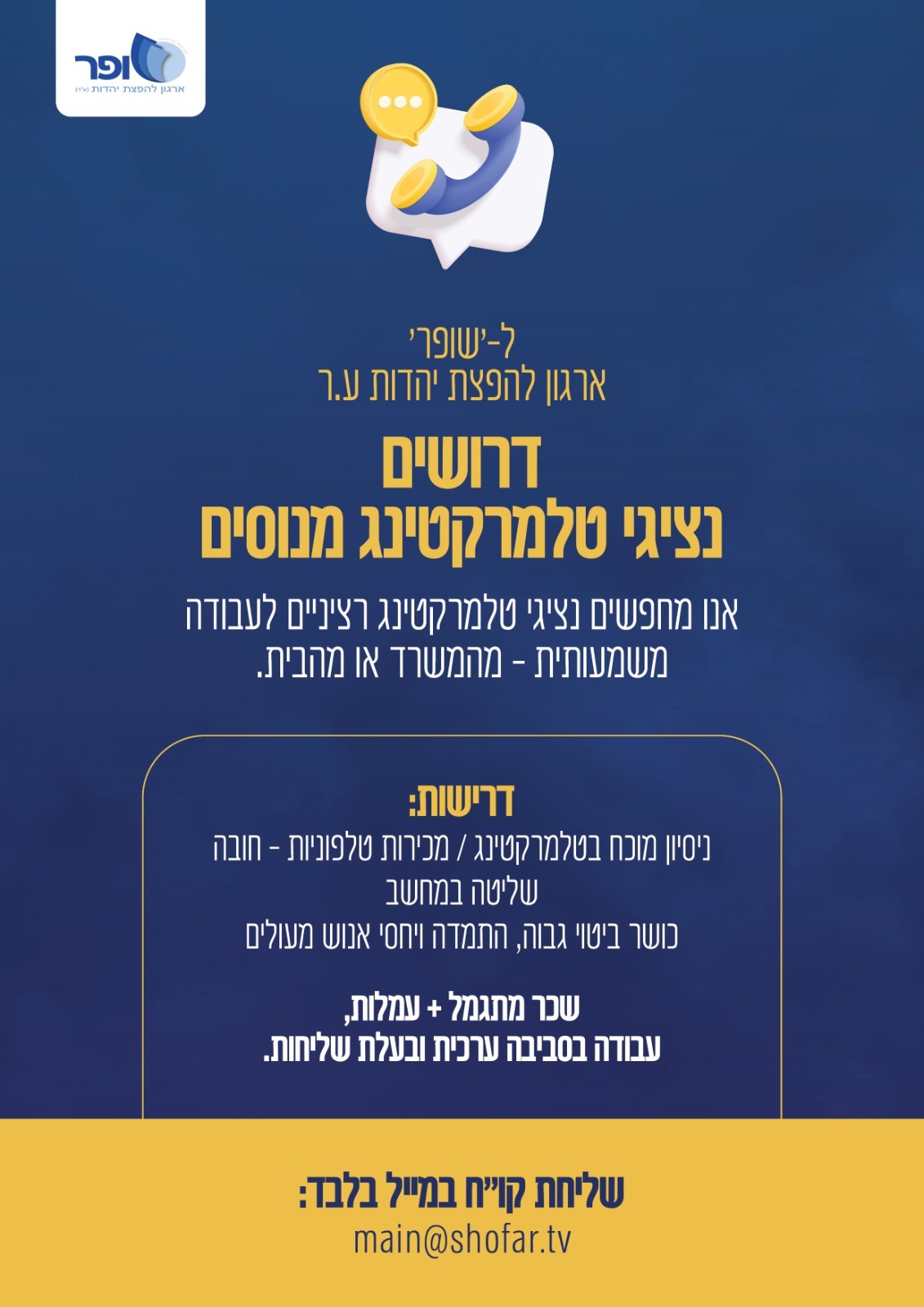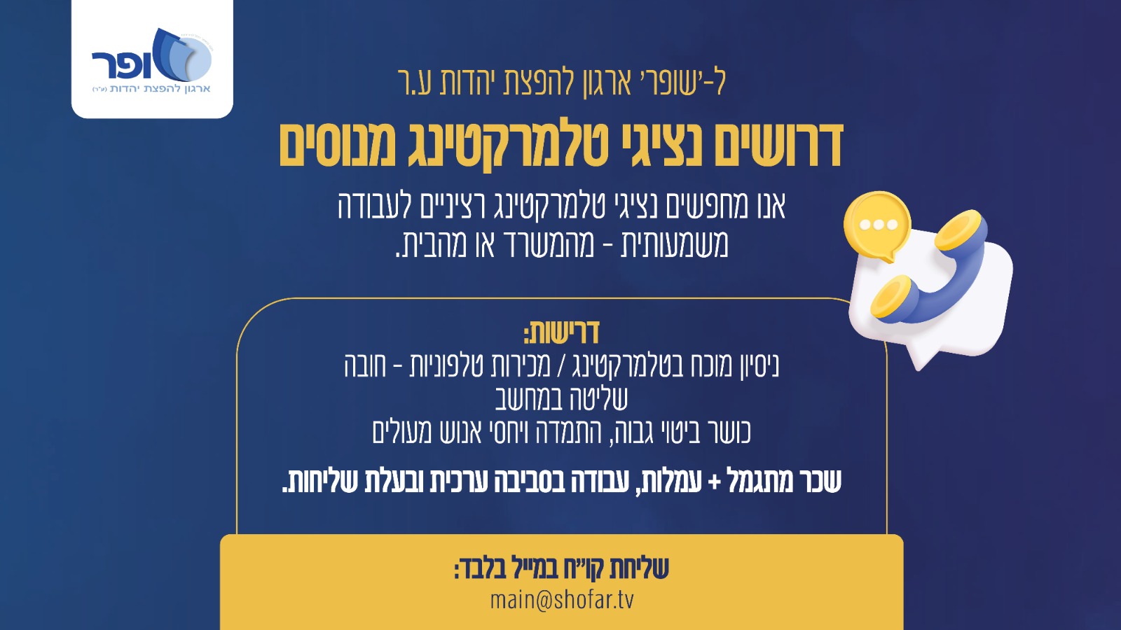 אנו מחפשים נציגי טלמרקטינג רציניים לעבודה משמעותית – מהמשרד או מהבית.