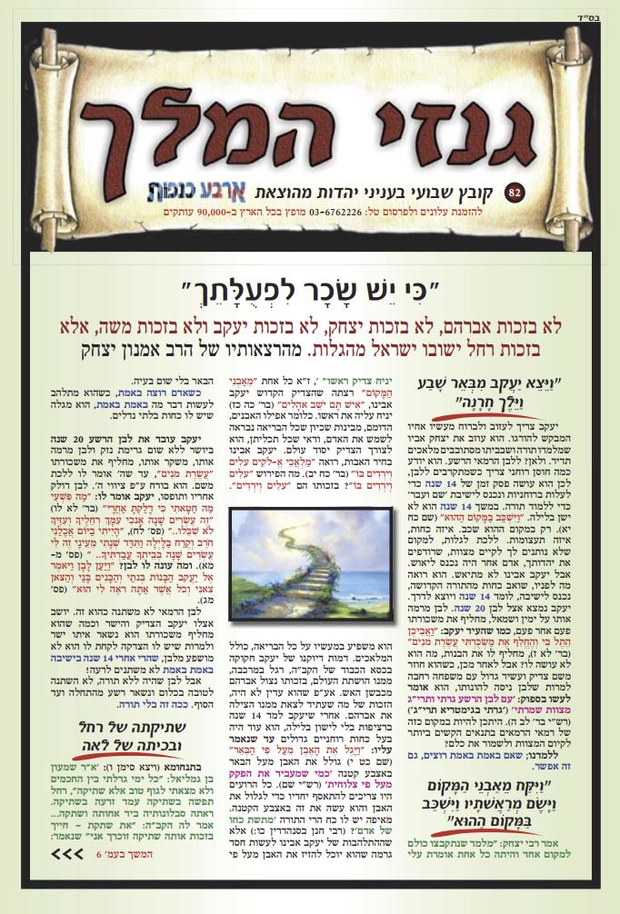 עלי הגיון "ויאמר לבן טוב תתי אתה לך... שבה עמדי" מדוע לבן ששנא תלמידי חכמים הסכים לתת את רחל בתו ליעקב? - לצפיה בגליון המלא מספר 231 לחץ כאן.