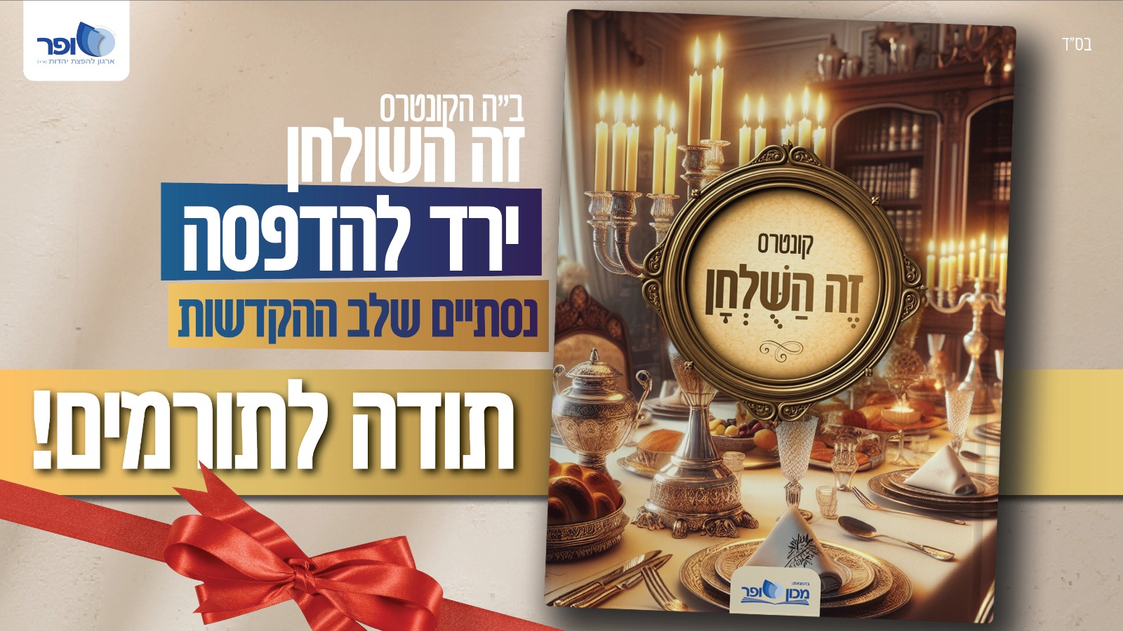 לכתבה: בשורה משמחת! ב"ה הקונטרס "זה השולחן" ירד להדפסה – לחץ כאן