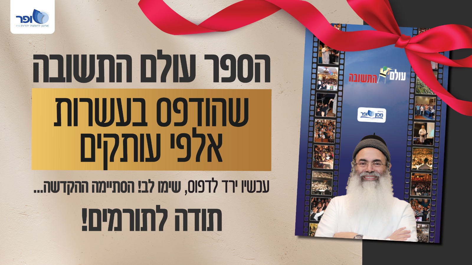 בברכת תשובה שלמה לכל עם ישראל, ושפע ברכה והצלחה עד בלי די, 'שופר' ארגון להפצת יהדות (ע.ר.)