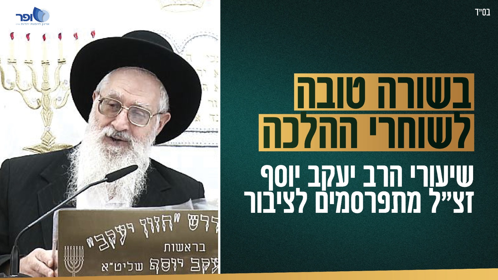 לכתבה הקודמת: בשורה טובה לשוחרי ההלכה: שיעורי הרב יעקב יוסף זצ"ל מתפרסמים לציבור - לחץ כאן.