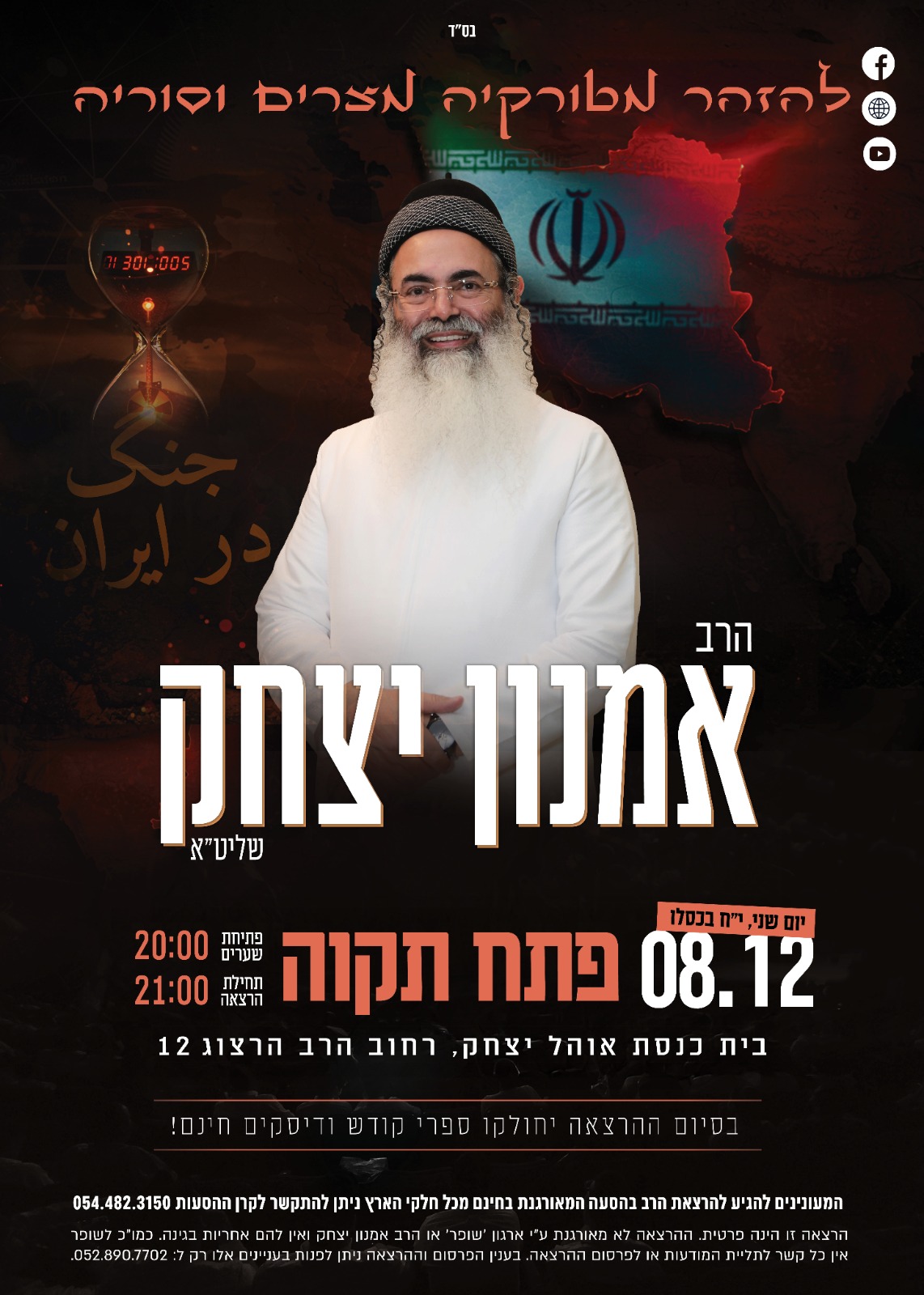 שלום כבוד הרב, אני בהלם... ב"ה בסוף ההרצאה שלכם ברמלה (26.11.25) ביקשתי ממכם ברכה לתינוק בן שנה שמאושפז בטיפול נמרץ ומועמד לניתוח לקוצב לב (ל"ע), הרב בירך לרפואה ואמר: 'שיצא מבית החולים מהרה!' מאז הברכה התחילה הטבה בליבו ואתמול הוא חזר הביתה ללא ניתוח, וואו תודה רבה כבוד הרב יה"ר שהשי"ת ישמור עליכם תמיד! (אמן) (רמלה - והוא יהיה פרא אדם 26.11.2025 shofar.tv/lectures/1689).